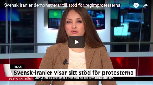اعتراضات مردمی کانال 4 سوئد – ایرانی های ساکن سوئد برای حمایت از اعتراضات مردمی در ایران تظاهرات میکنند ۱۷ دی ۱۳۹۶ سر دبیر گزارش کانال 4 سوئد از تظاهرات ایرانیان مقیم سوئد در حمایت از قیام مردم ایران