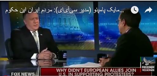 مایک پامپئو (مدیر سیا): مردم ایران این حکومت مذهبی واپسگرا را نمیخواهند و یقین دارم که شاهد ادامه قیامشان علیه این حکومت خواهیم بود. (فیلم زیر با زیرنویس فارسی)