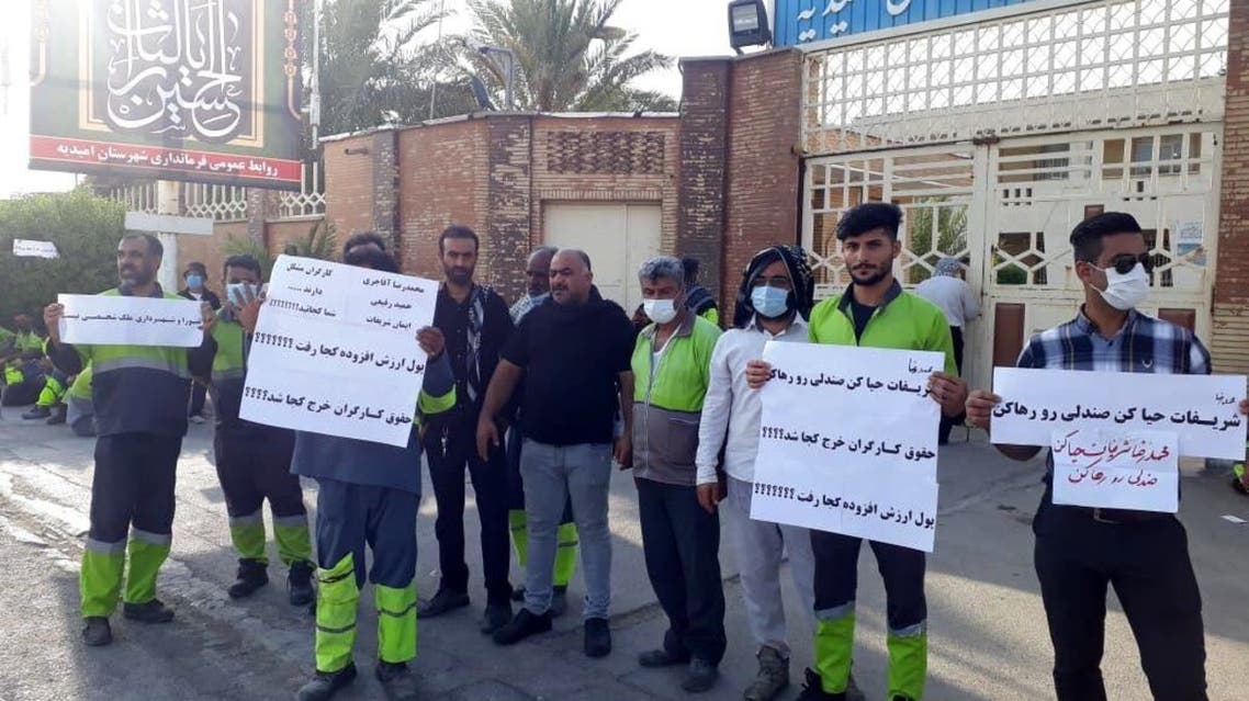 شماری از کارگران شهرداری «امیدیه» خوزستان، امروز سهشنبه، 9 شهریور 1400، برای چهارمین روز پیاپی، در اعتراض به عدم رسیدگی به مطالبات خود، دست به برگزاری تجمع اعتراضی زدند.