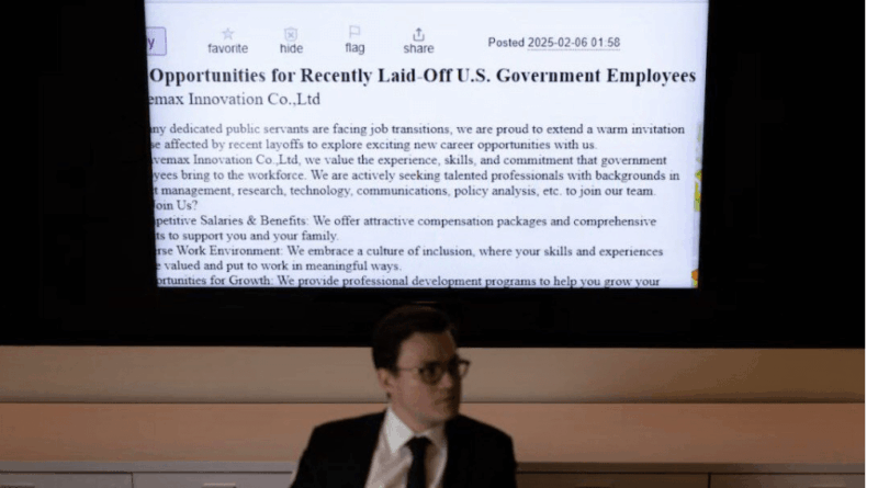 لسر که این شبکه را کشف کرده به رویترز گفت «آنچه این فعالیت را قابل توجه میکند این است که این شبکه به دنبال سواستفاده از آسیبپذیریهای مالی کارگران سابق فدرال است که تحت تاثیر اخراج های گسترده اخیر قرار گرفتهاند.»