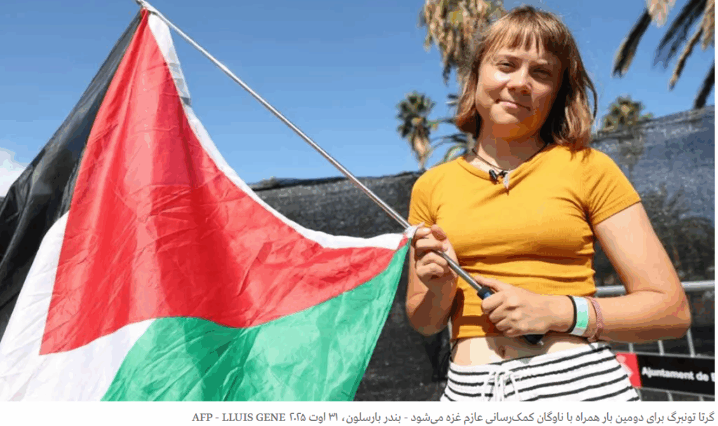 گرتا تونبرگ سوئدی که اینک ۲۲ سال دارد برای دومین بار همراه چنین کاروانی شده است. بار اول بیش از دو ماه قبل بود که کشتی کوچک «مادلین» با ۱۲ سرنشین فرانسوی، ترک، آلمانی، برزیلی، سوئدی، اسپانیایی و هلندی عازم غزه شد اما نیروهای اسرائیلی در ۱٨٠ کیلومتری ساحل، آن را متوقف کردند. برخی از سرنشینان یکی دو روز در بازداشت اسرائیلیها ماندند و بدون هیچ نتیجهای به کشورهای خود بازگشتند.