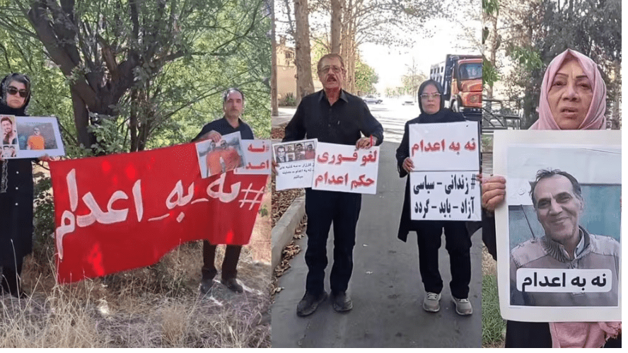 تصاویر و ویدیوهای منتشر شده در شبکههای اجتماعی نشان میدهد خانوادههای زندانیان سیاسی محکوم به اعدام در تهران، سهشنبه ۱۱ شهریور تصاویری از زندانیان سیاسی محکوم به اعدام و پلاکاردهایی با شعارهای «نه به اعدام»، «لغو فوری حکم اعدام» در دست گرفتند.