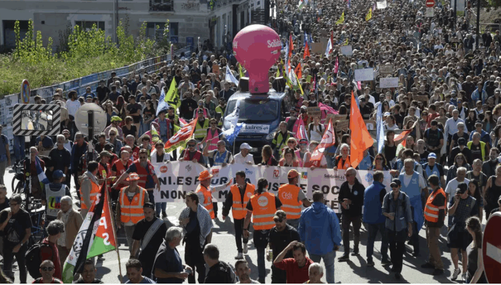 فرانسه، امروز پنجشنبه ۱۸ سپتامبر، شاهد بزرگترین اعتصاب و تجمعات اعتراضی در دو سال گذشته است. اتحادیههای کارگری از بخشهای مختلف از جمله حملونقل، آموزش، رانندگان کامیون و داروخانه ها، دست به اعتصاب زدهاند تا به کاهش شدید بودجه ۲۰۲۶ که دولت قصد اجرای آن را دارد، اعتراض کنند. تظاهرات اصلی امروز، در پاریس، اندکی پس از ساعت ۱۴ از میدان باستیل به سمت میدان ناسیون، آغاز شد.