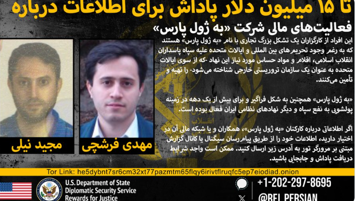 «برنامه پاداش برای عدالت» در بیانیهای نوشت: مهدی فرشچی و مجید نیلیاحمدآبادی، از کارگزاران شرکت بزرگ تجاری «به ژول پارس» هستند که «به رغم وجود تحریمهای بینالمللی ایالات متحده علیه سپاه پاسداران انقلاب اسلامی، اقلام و مواد حساس مورد نیاز این نهاد را که از سوی ایالات متحده به عنوان یک سازمان تروریستی خارجی شناخته میشود، تهیه و تامین میکنند.»