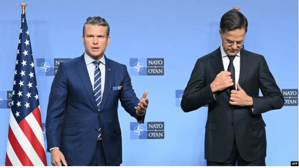 پیت هگست، وزیر جنگ ایالات متحده در نشست ناتو در رابطه با اوکراین به مسکو هشدار در صورت عدم پایان جنگ اوکراین، آمریکا به همراه متحدانش «هزینههایی را بر مسکو تحمیل میکند»، طوری که به گفته او «فقط از عهده آمریکا بر میآید»