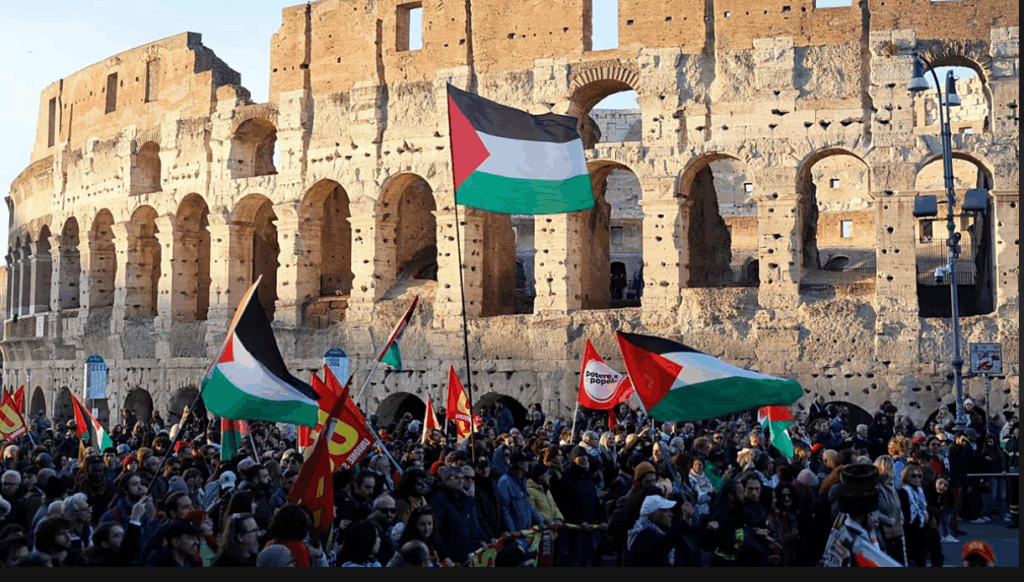 در «روز جهانی همبستگی با مردم فلسطین»، فرانچسکا آلبانزه، گزارشگر ویژه سازمان ملل متحد و گرتا تونبرگ، فعال محیط‌زیست، راهپیمایی بزرگی را در پایتخت ایتالیا و در حمایت از فلسطین برگزار کردند.