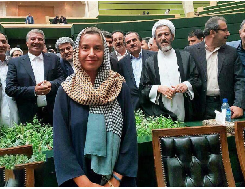 موگرینی در حافظه جمعی ایرانیان، به عنوان مقام اتحادیه اروپا که در جریان مذاکرات و انعقاد برجام حضور داشت نقش بسته است. رفت و آمد او به ایران در دوران ریاست جمهوری حسن روحانی مورد توجه رسانه‌ها بود. موگرینی دیدارهای متعددی با محمدجواد ظریف، وزیر امور خارجه وقت جمهوری اسلامی داشت.