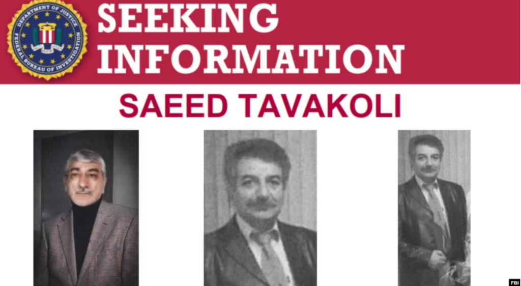 اطلاعیه افبیآی که روز سهشنبه ۲ دی به وقت واشنگتن منتشر شد میگوید سعید توکلی بهدلیل ارتباطی که گفته میشود با فعالیتهای سپاه پاسداران انقلاب اسلامی دارد «برای بازجویی تحت تعقیب» است.