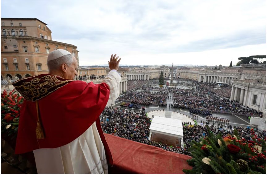 پاپ لئون چهاردهم در نخستین کریسمس خود در مقام رهبر کلیسای کاتولیک و رئیس دولت واتیکان به پیروی از اسلافش برای صلح دعا کرد. او بر خلاف سخنان قبلیاش چند بار از وضعیت دردناک مردم غزه یاد کرد و همچنین خواستار گفتگوی صادقانه و مستقیم میان روسیه و اوکراین شد.