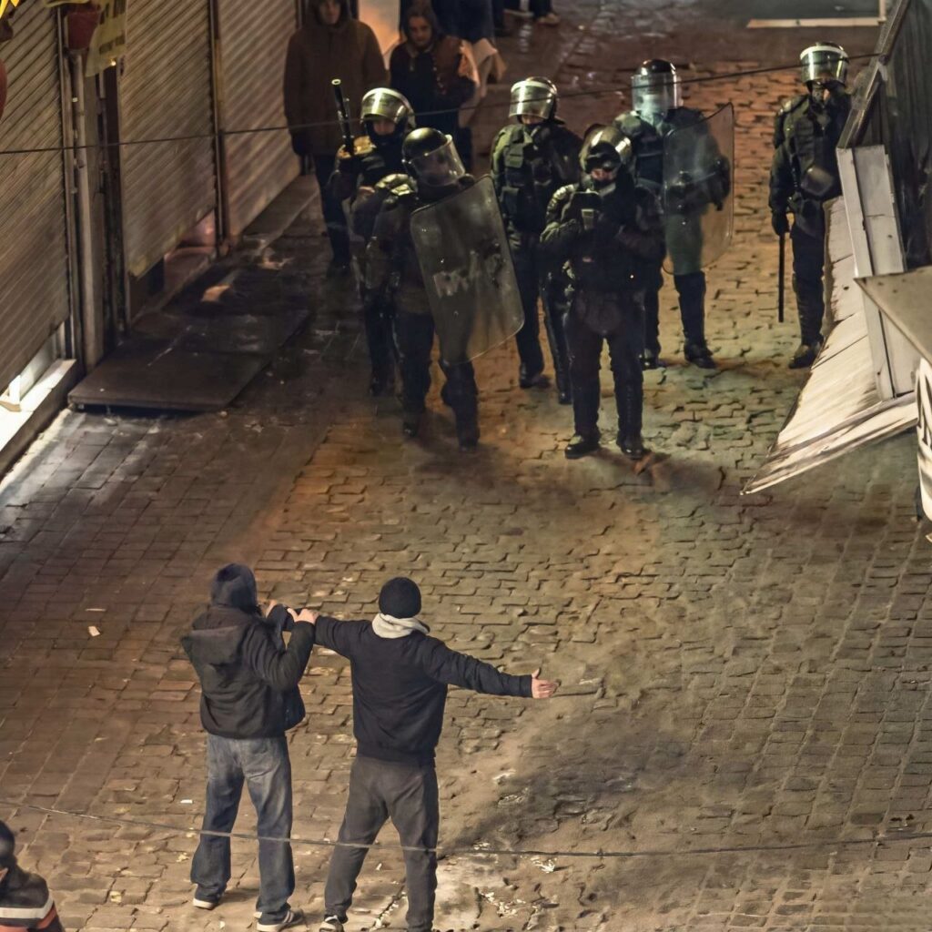 اعتراضات به عنوان “تهدید خارجی” یا “فتنه” تصویر میشوند. بسیج در دانشگاههای وابسته به سپاه (مانند امام حسین و امام صادق) مدلهای سرکوب را بر اساس تاکتیکهای سوریه مطالعه میکند: کنترل محلهای، نظارت محلی، و ترکیب سرکوب سخت با جنگ روانی. در دی ۱۴۰۴، بسیجیان تیراندازی مستقیم به سر معترضان را انجام دادند، که گزارشها آن را “کشتار هدفمند” توصیف میکنند. بیش از ۳۷۰۹ نیروی انتظامی در این اعتراضات مجروح شدند، اما کشتههای معترضان هزاران نفر بود.