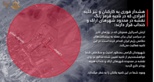 ادامه»ارتش اسرائیل هشدار تخلیه برای ساکنان محدوده ۲ کیلومتری از تاسیسات آب سنگین اراک صادر کرد