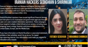 ادامه»جایزه ۱۰ میلیون دلار ی آمریکا برای ارائه اطلاعات بهمنظور شناسایی دو عامل سایبری ایرانی